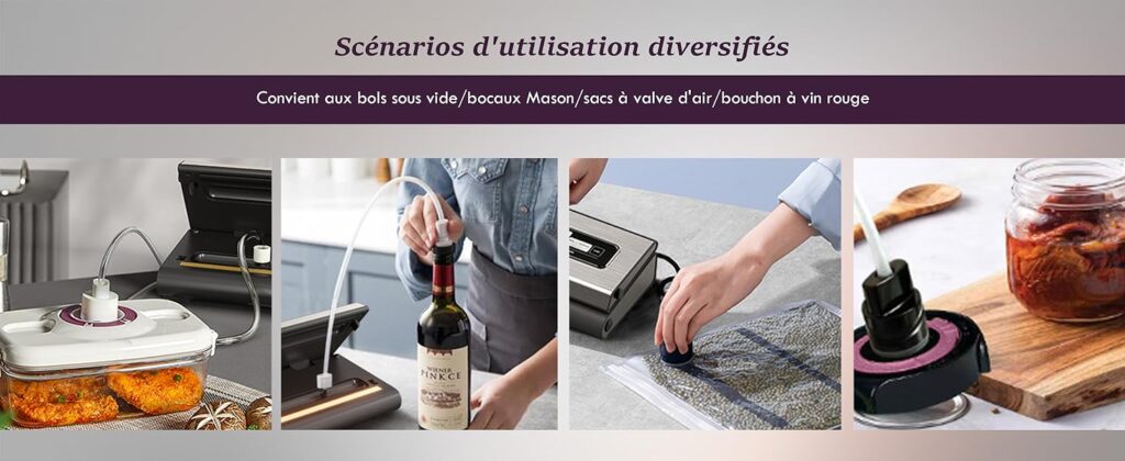 | Compatibilité sacs | Sacs et rouleaux sous vide gaufrés universels |